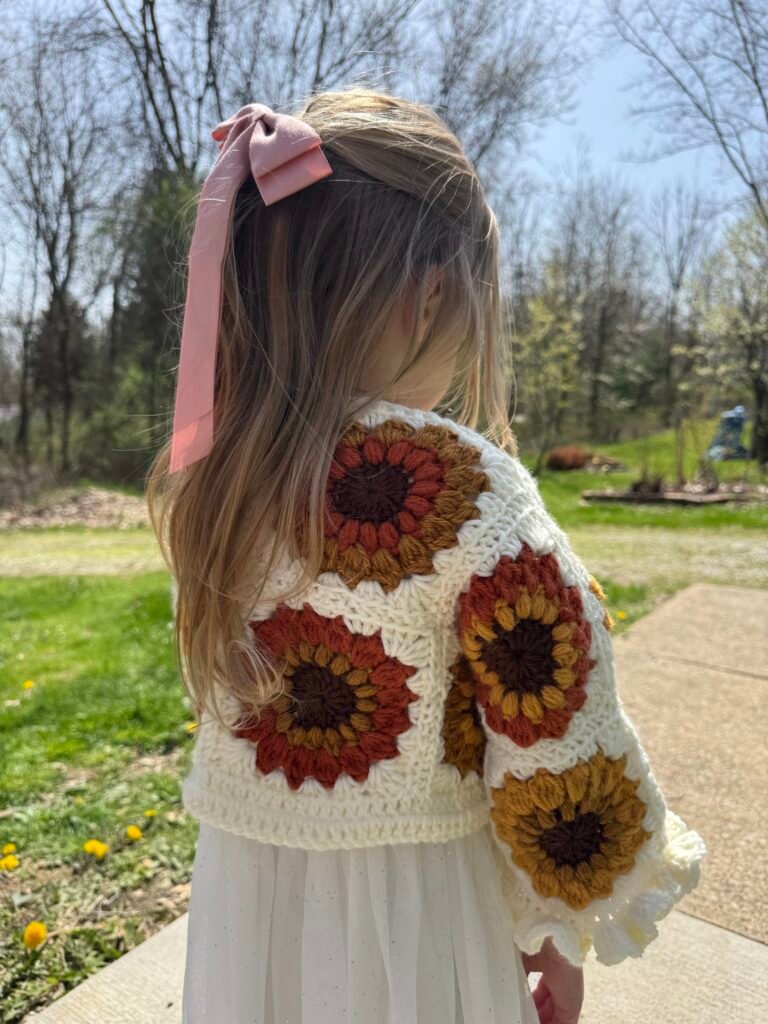The Sunburst Granny Square is an all-time classic but really shines during the Spring and Summer months! You can expand it with more rows to add endless color options, or keep it simple and cute with the classic 4-5 rows of petals. This granny square is super versatile, however depending on the yarn you use, it can become very thick so keep that in mind when designing your projects! I’m currently working through the rest of my Big Twist yarn, so I decided to make this Sunflower Child’s Cardigan with this granny square! Since the yarn I used is acrylic, this wouldn’t be ideal for Summer, but you can easily swap it out for cotton and now you have a light and flower cardigan! I also created a few bags using the same pattern with a green background instead, and I absolutely love the contrast the green makes! Yarn used: Pound of Love by Lion Brand