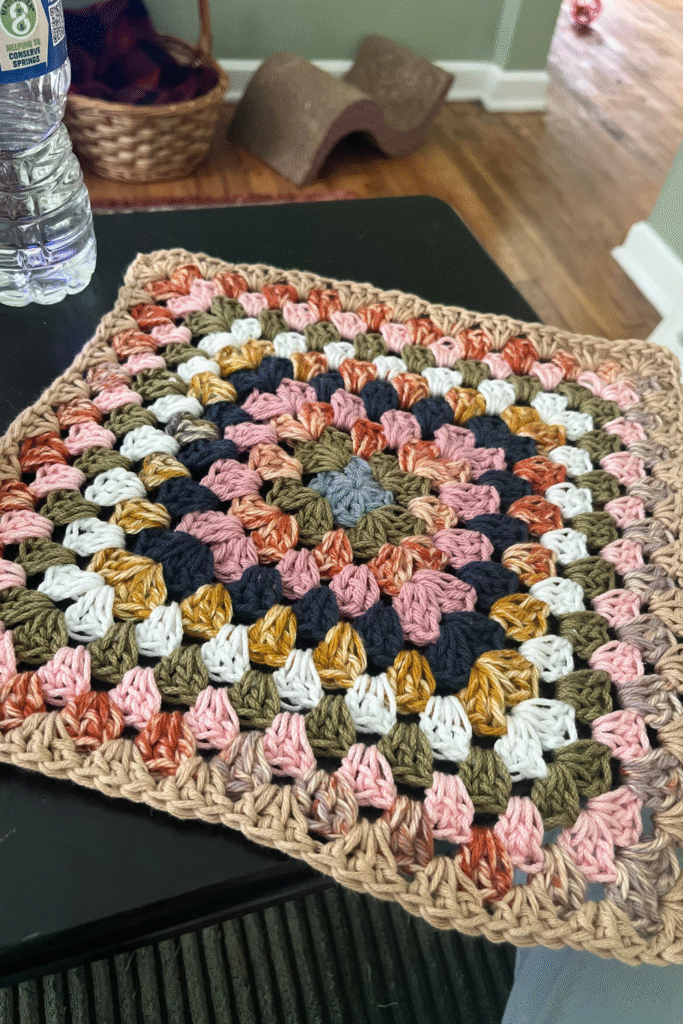 One of my new favorite projects to make is the Daisy Granny Square! With endless color combinations, you can make these look super aesthetic and clean or fun and retro like I did for this child’s cardigan I have been working on. There are so many possibilities with this Daisy Granny Square; hot pads, coasters, blankets, bucket hats, I could go on! This summer I decided to work on some pastel squares using the Pound of Love yarn from Lion Brand in the colors White, Quartz, and Pastel Pink. Unfortunately, the mint green was a Big Twist color so I will update once I know if Michael’s carries it! For the center of the flower, I used Homeland yarn by Lion Brand in the color Canyonlands, a beautiful rusty bronze gold color. I’m using acrylic yarn for my cardigan project, but this granny square would be so gorgeous using cotton yarn to make some cute kitchen and homestead accessories!